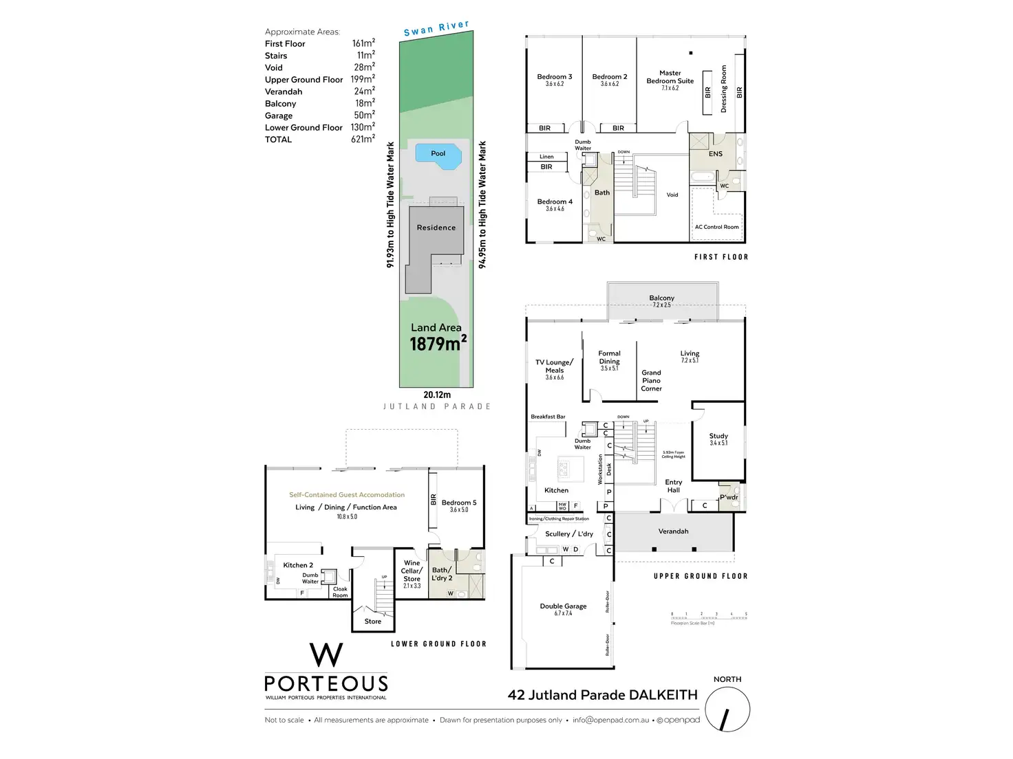42 Jutland Parade, however, remains intact. Today, it still totals a majestic 1,879sqm of prime land from the road to the river, crowned by a 3-level, light, spacious, contemporary home with everything required for a busy modern family lifestyle.