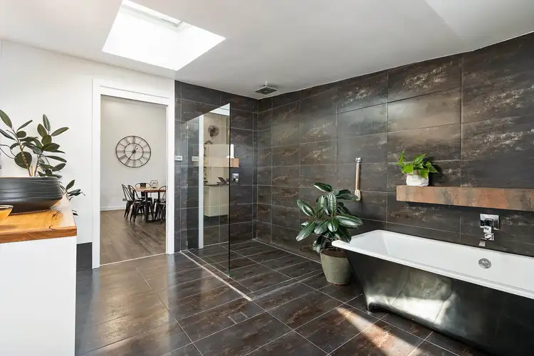 - Renovated bathroom with frameless glass double headed shower, separate w/c