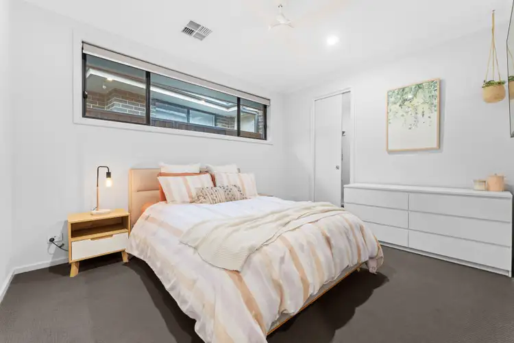 At the heart of the home is the designer kitchen, boasting a stone benchtop island, walk-in pantry, quality appliances, and plenty of cupboard space, all seamlessly connected to the open-plan living and dining area. Sliding doors extend the space outdoors to a covered alfresco entertaining area with decking, perfect for hosting friends and family all year round.