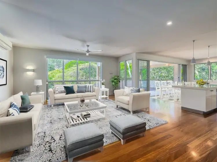 Architecturally designed and sustainably engineered, this contemporary Queenslander encompassed by natural greenery in the desirable suburb of Kenmore embodies luxury, privacy and lifestyle. Situated on a generous 948m2 block, this palatial dual-storey property has been meticulously and professionally constructed, seamlessly combining versatile indoor and outdoor entertaining areas for optimal family living. The residence rests only 14km and 20 minutes from the Brisbane CBD, whilst maintaining a peaceful position nestled within a private enclave of the blue-chip locale.