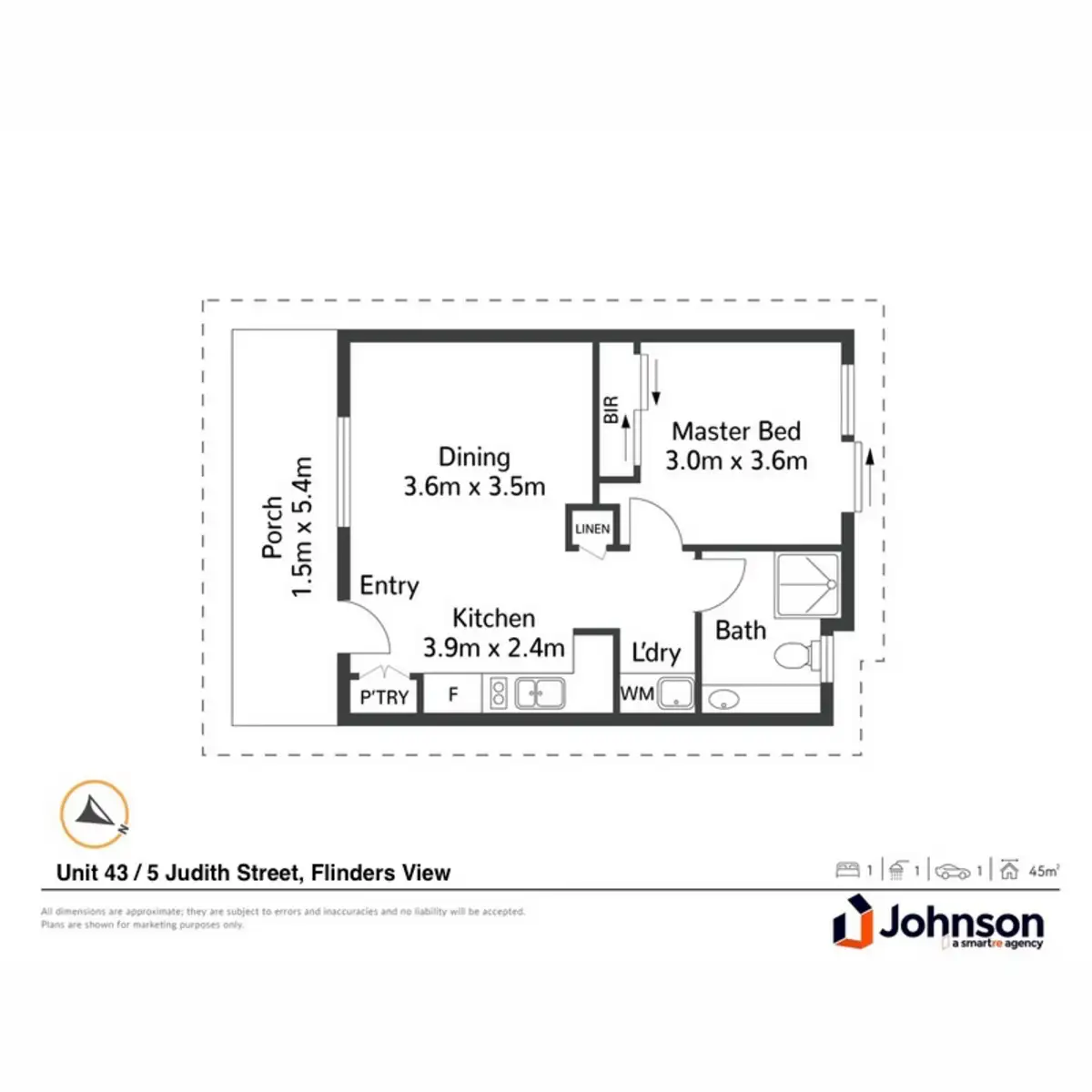 1 Bed • 1 Bath • 0 Car
