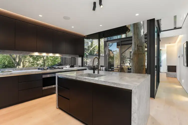 Experience the very essence of cutting-edge style and sophistication in this brand new bespoke residence, aesthetically striking from all angles and finished to superior standards. Spanning two light filled levels with captivating city skyline views, it reveals chic marble interiors enhanced by floor-to-ceiling glass and an abundance of natural light. There is a state-of-the-art kitchen equipped with top-of-the-range Miele appliances including a 900mm oven, custom Pitt cooktop, an integrated coffee machine, fridge, freezer and a butler's pantry. Stunning living areas enjoy seamless transitions to the outdoors including to a sun soaked Limestone entertainment courtyard with an integrated barbecue, sink, seating and planter beds. Upper level accommodation comprises three well-scaled bedrooms, the chic master features a custom walk-in wardrobe and ensuite while opening to a sunlit balcony capturing city skyline and Harbour Bridge views. Further highlights include Sonos, C-bus, ducted air conditioning, an Ecosmart fireplace, a/c custom wine cellar, keyless entry, extensive security as well as a custom garage with tilt-up door. Expertly crafted to deliver the ultimate in designer living, this incredible offering is positioned within a stroll of Darling Street's vibrant shops and eateries, express city buses, boutiques and all the area has to offer.