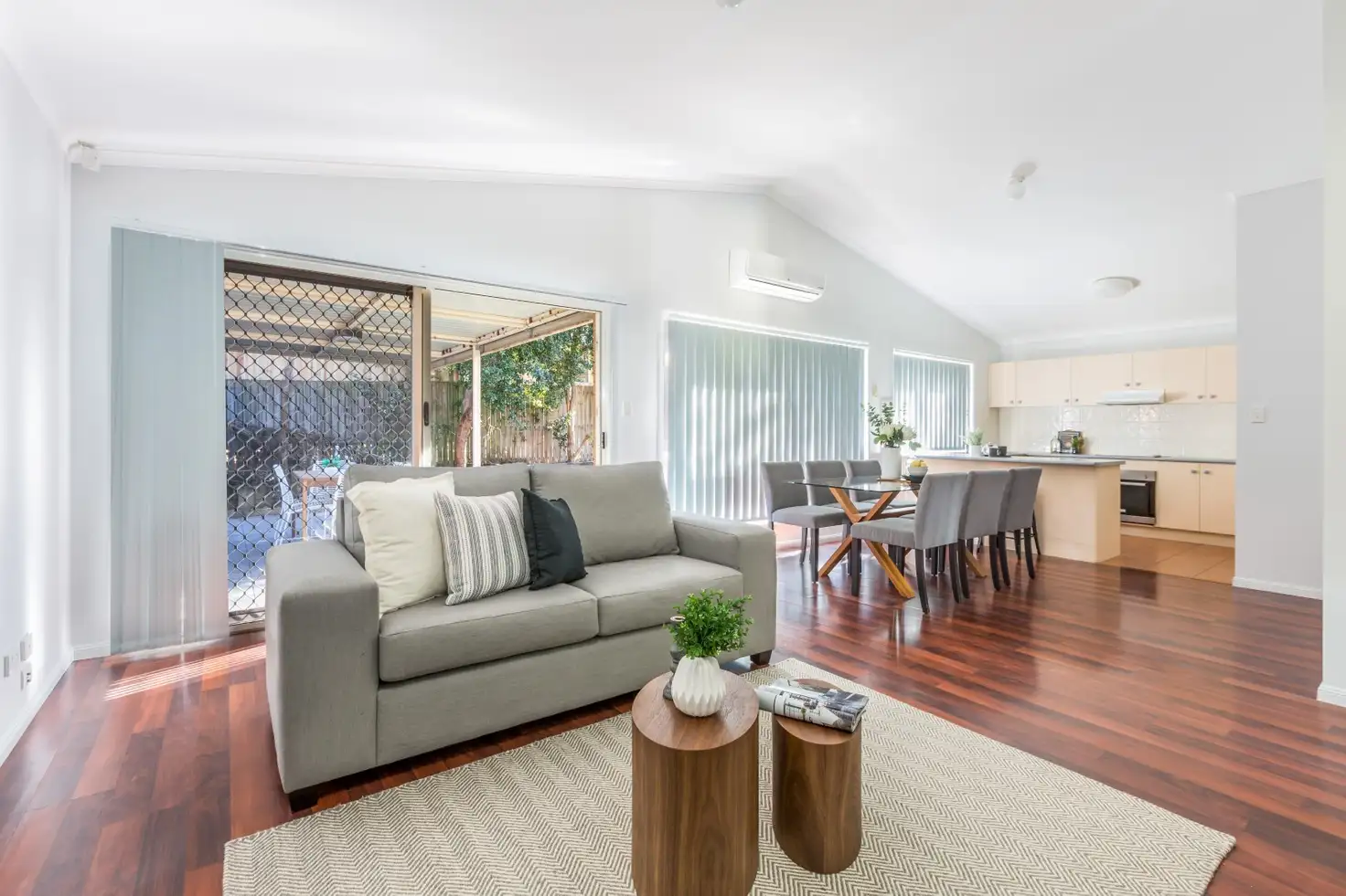 - Air conditioning, ceiling fans & security screens;