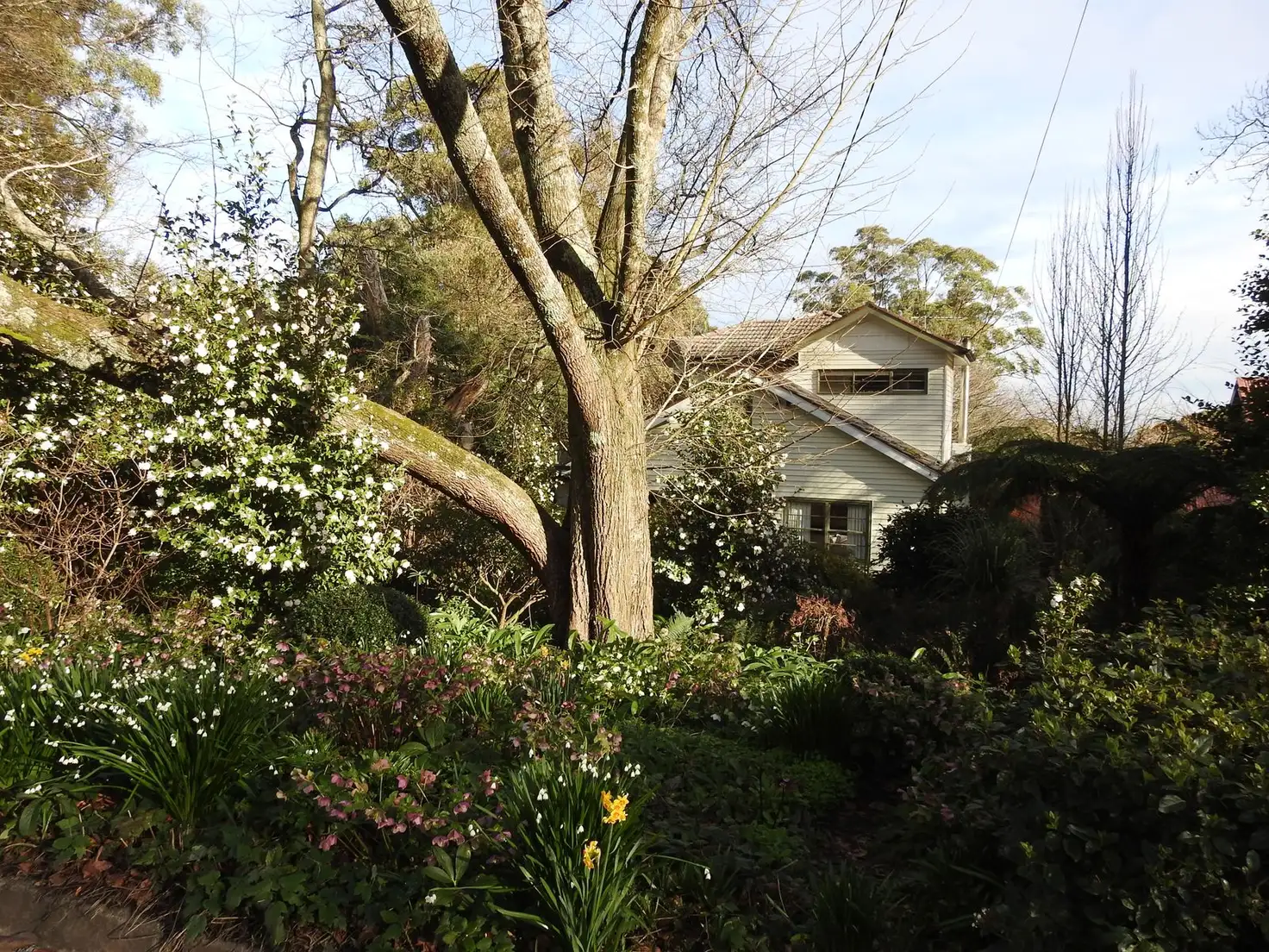 The cooler climate allows the Camellias and Rhododendrons to flower through winter/ spring, and stunning autumn