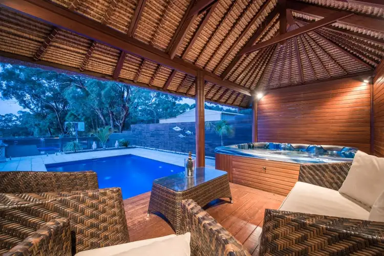 With large double glass doors leading from both the dining room & family room it is hard to miss this absolutely stunning entertaining area. The beautiful timber pergola area features large sandstone pavers, plenty of lighting, caf blinds for true year-round entertaining and is currently set up with mounted TV and mounted speakers, a perfect spot to relax with family & friends to watch the Grand Final. To the rear of the home, the surprises keep coming. Behind the frameless glass fencing is a stunning in-ground pool with paved coping & surrounds plus timber slatted privacy screens along the whole back fence. Off the side of the pool is the timber decked Bali hut with 6-person spa and an outdoor lounge area. This large backyard also includes well-manicured lawn areas and a paved patio area currently utilised as a basketball court with established yet low maintenance gardens. To the front of the home is the double garage with auto panel lift door, drive through access, plus other off-street parking and of course another beautiful garden.
