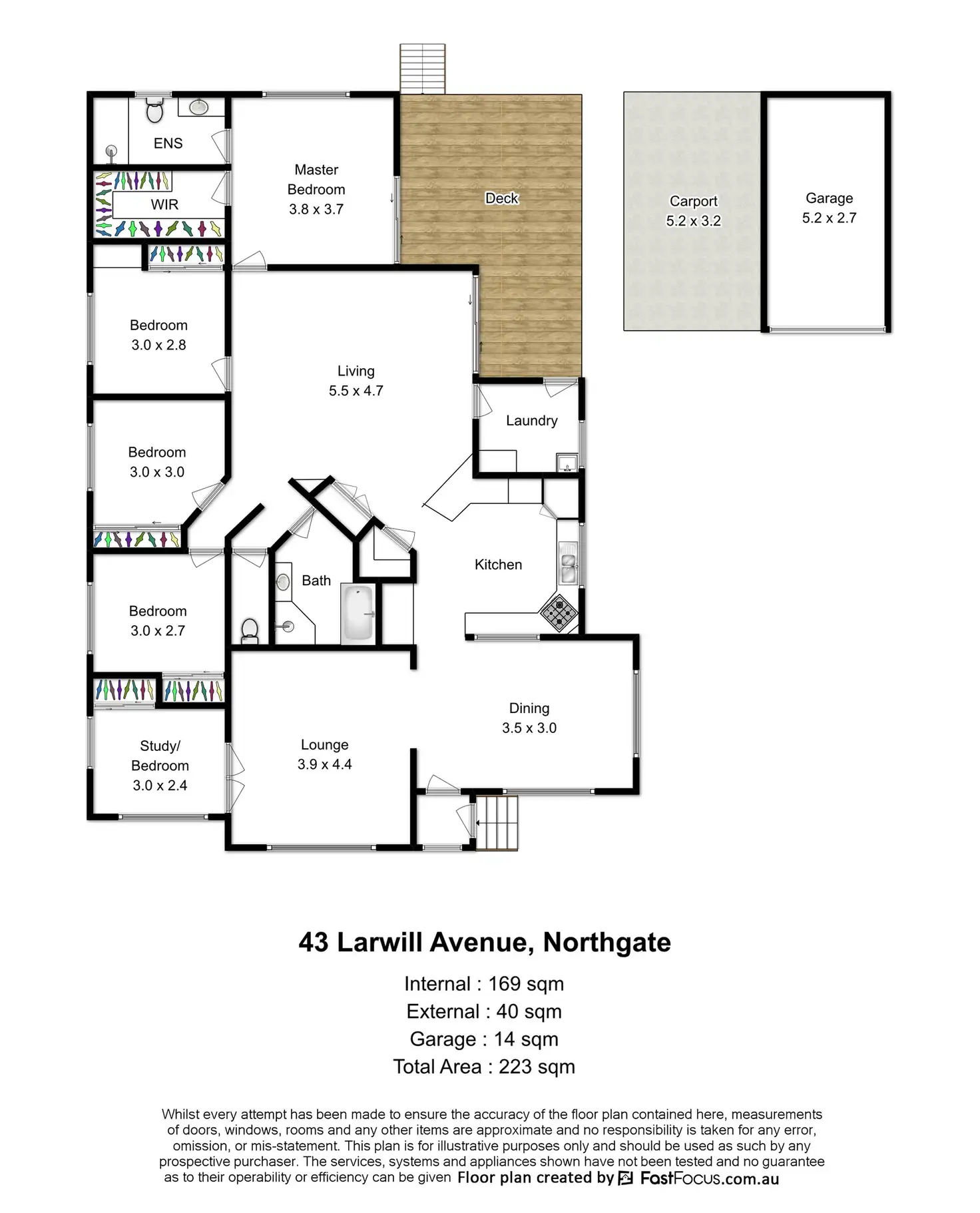 * Private rear deck for outdoor entertaining
