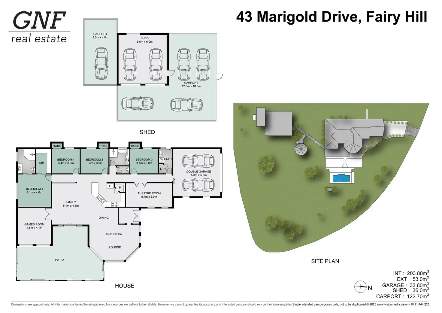 Additional features include a double auto lock-up garage with internal access, easy side access to a powered four-bay shed, a covered carport at the front, and a separate side carport suitable for a caravan. Solar panels and a solar hot water system enhance the home’s energy efficiency, while ceiling fans and air-conditioning provide year-round comfort.