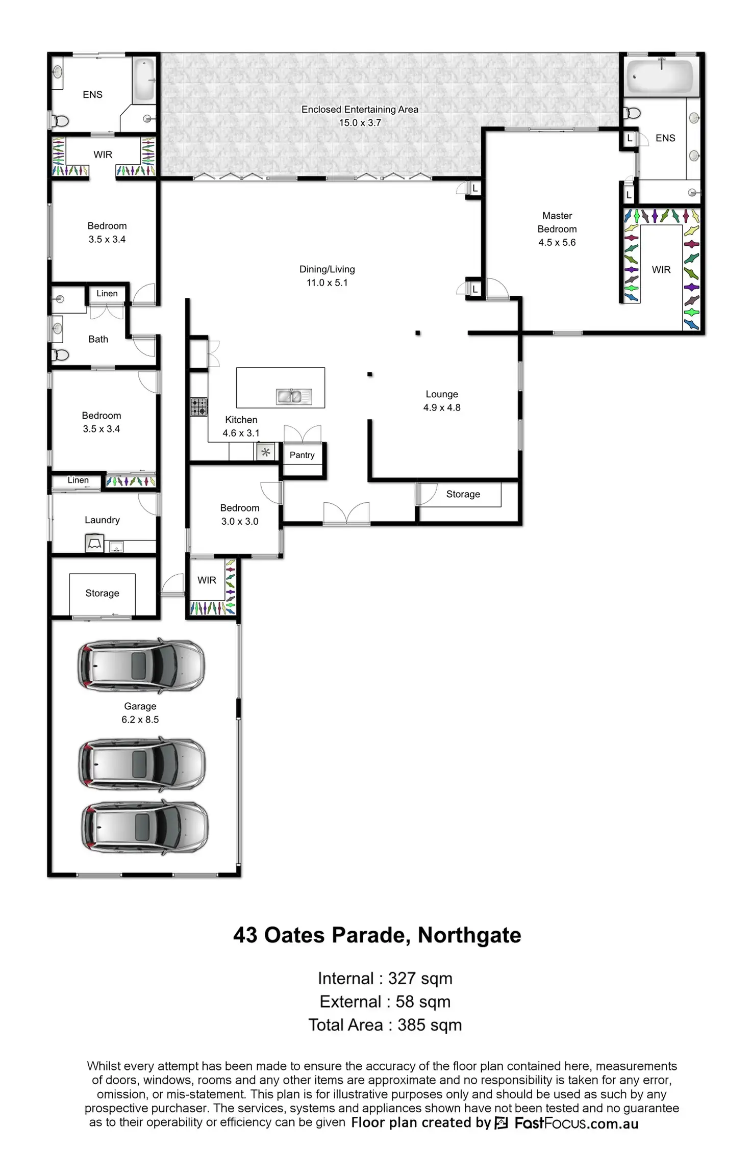 * Over-sized master bedroom with walk-in wardrobe, stylish ensuite with spa-bath, his and hers vanity and direct access to the backyard and pool