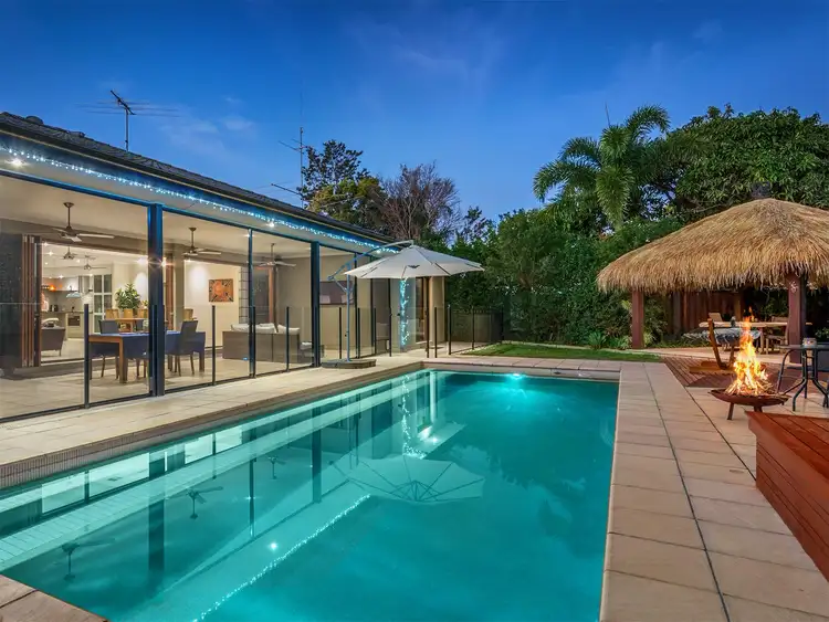 Bi-folding doors offer a compelling invitation to explore the private, tropical-vibed backyard complete with excellent full-width rear patio, Bali hut and fabulous salt-water pool with solar-heating system. This is the ultimate space to enjoy weekend get-togethers with friends and family, poolside barbeques, evening alfresco dinners and more.
