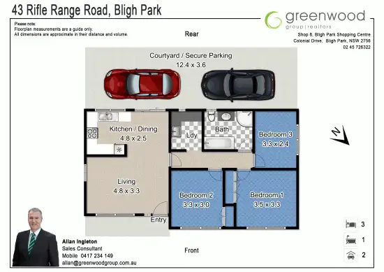 3 Bed • 1 Bath • 2 Car • 395m²