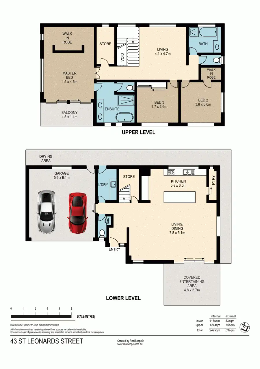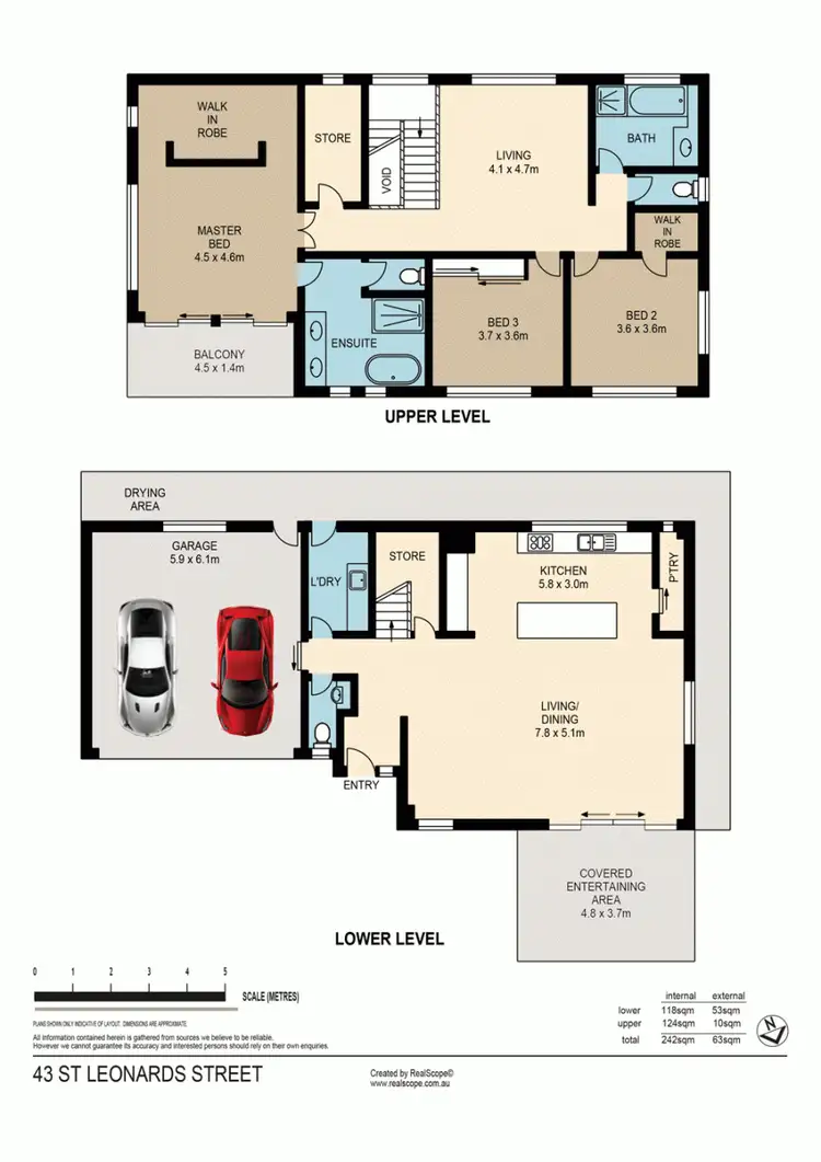 Upstairs provides another living area, storage room, main bathroom, ensuite and the bedrooms. The Master Suite is well designed and extra large. It offers a Walk Through Robe, private Balcony and Large Ensuite with Separate Bath, Shower and Toilet. Bedroom 2 has it's own Walk in Robe and Bedroom 3 has Built In Wardrobes. Bedrooms 2 & 3 both measure 3.6m by 3.6m.