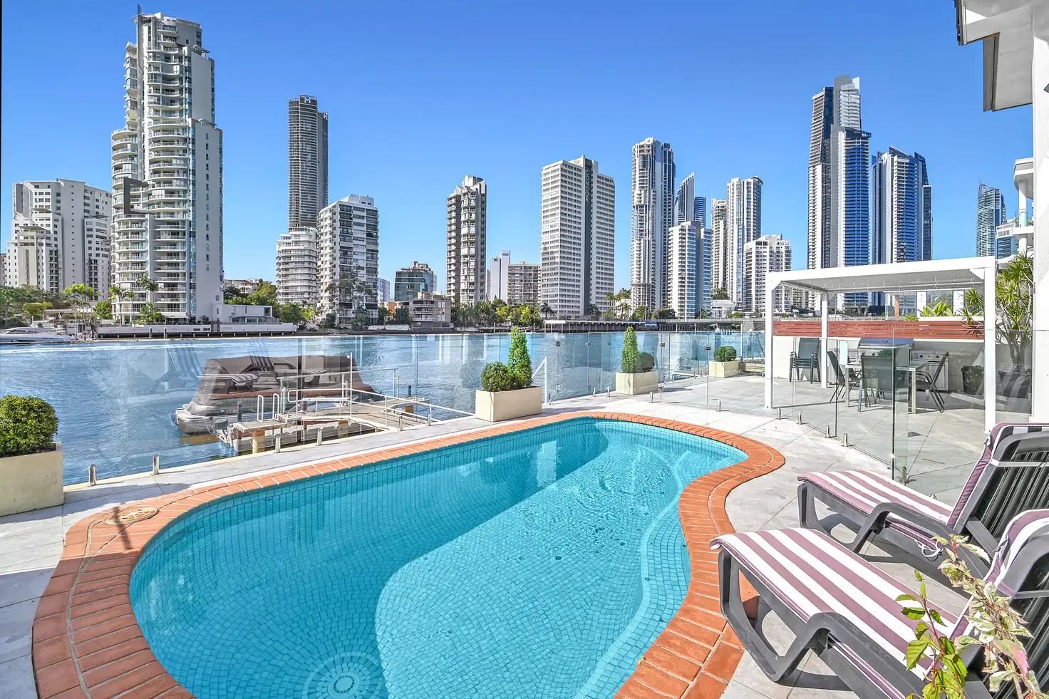 Nestled in one of the most prestigious streets in popular Chevron Island and set against the backdrop of the glittering Surfers Paradise skyline, this home boasts a north-east facing, meticulously maintained two-story home offering an unparalleled prestigious waterfront lifestyle.