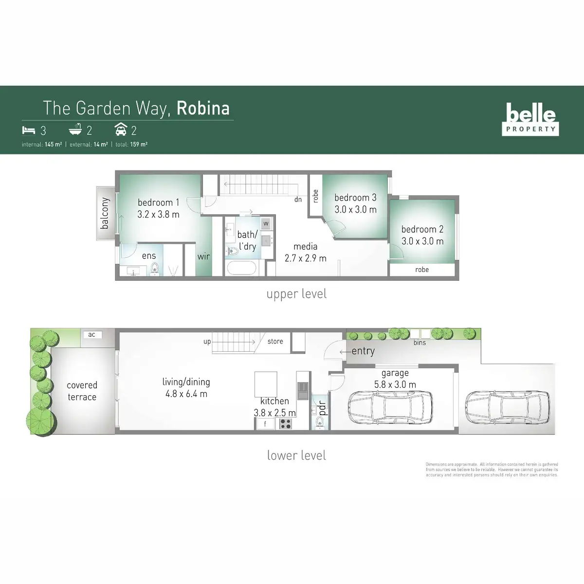 The upper level offers a second relaxation zone plus office nook as an added bonus. Three generously sized bedrooms, all with large windows and BIR's, including the stylish and sizeable master with air con, walk-in robe, ensuite and private North facing balcony. A large main bathroom services the second floor, cleverly combined with laundry and storage for added convenience.