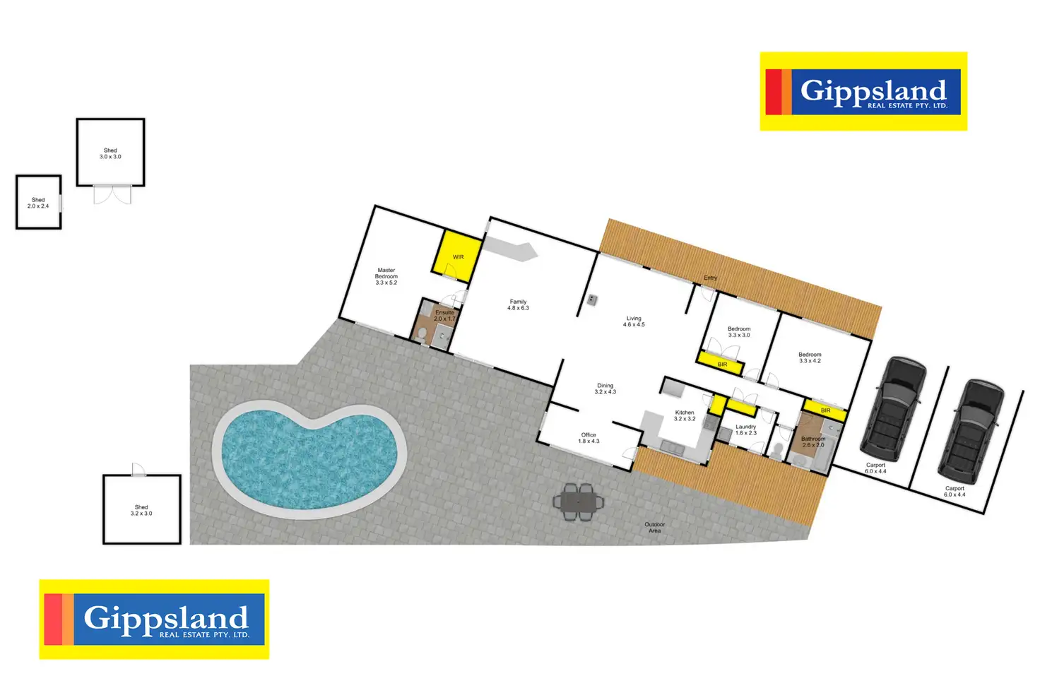 3 Bed • 2 Bath • 2 Car • 833m²