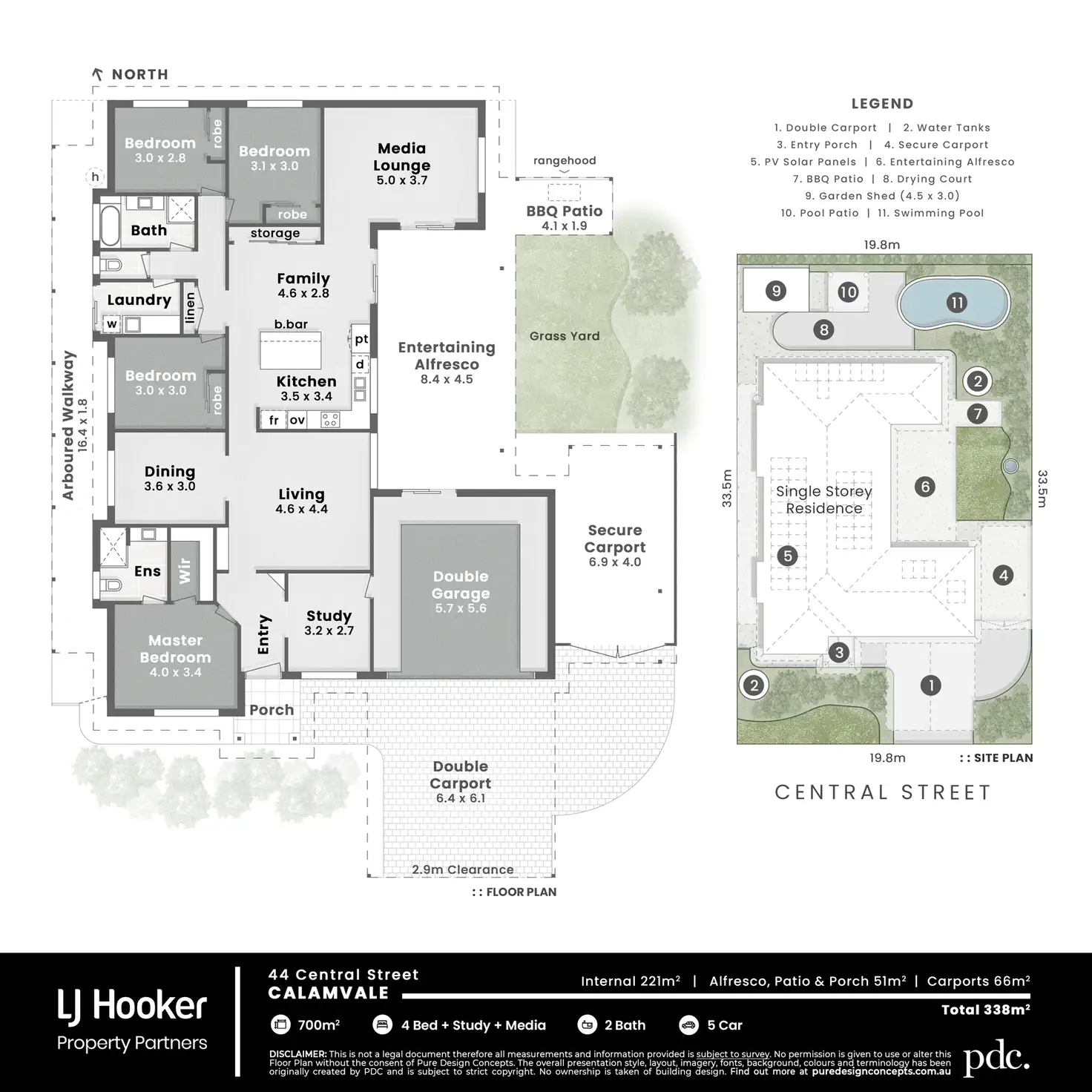- Formal lounge & dining rooms, combined kitchen/casual meals, separate media lounge