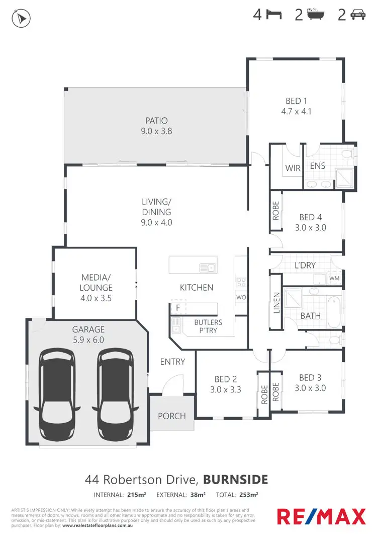 4 Bed • 2 Bath • 2 Car • 630m²