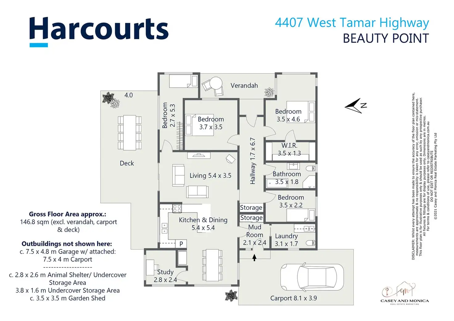 The home, set well back from the road, sits on 1.125 hectares (approx. 2.81 acres) of gently sloping land. The grounds offer plenty of room for an animal or two with a good size shelter in the front paddock, there is a garden shed, a garage (approximately 7.5m x 4.8m) with an attached carport (approximately 7.5m x 4m) and another carport which adjoins the home (great for getting in and out of the car on a rainy day, approximately 8.1m x 3.9m). The large deck provides a lovely entertaining area with the front verandah having internal access and being a peaceful place to relax, perhaps with a good book and a glass of one of Tassie's fine wines.