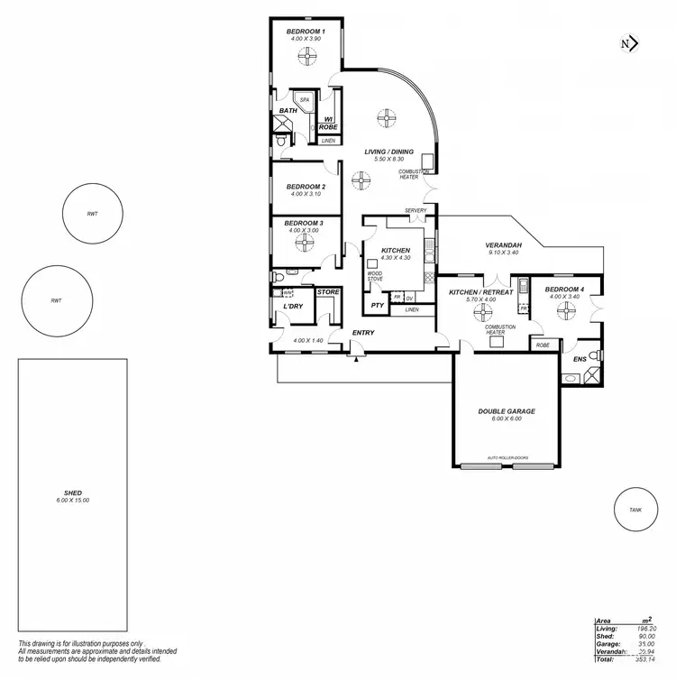 Internal access from double garage with 2.7 m high auto roller doors