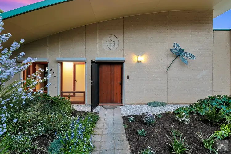 The gusty yet smooth rammed earth walls, re-cycled oregan timber skirtings, window/door frames, solid front and French doors, unique natural ochre floors and large sun-drenched windows provide an abundance of interior appeal and will suit any decorating style. While the clever orientation of the home provides a breathtaking view across the lush lawn and garden, a neighbouring dam, out to the Mount Lofty Ranges, Kuitpo Forrest and surrounding grazing lands.