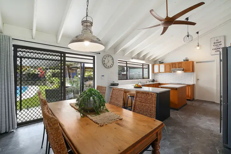 The main dining area and updated kitchen back onto the lounge room. This fine space is the heart of the home. The kitchen has recently been treated to new stone benchtops and a splashback. The view looks out over the pool, the spa and the partially covered outdoor entertainment zone.