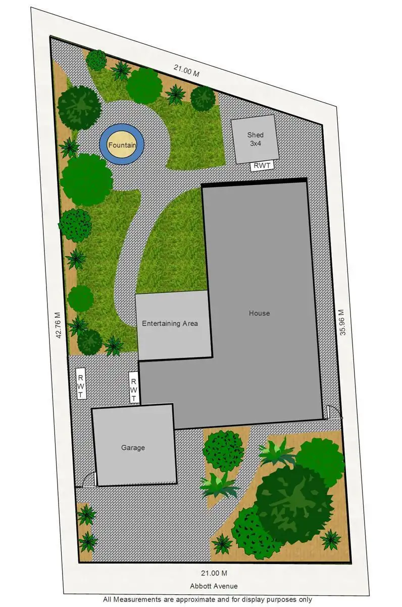 The back garden is as entertaining to the eye as the front, with further terraced stone walling, and a multitude of flowering plants surrounding a manicured lawn drawn together by a functional fountain featuring an engaging cherub. The garden boasts a number of well-established fruit trees (plums and apricots), and enjoys wonderful summer shade from a neighbouring pepper tree.