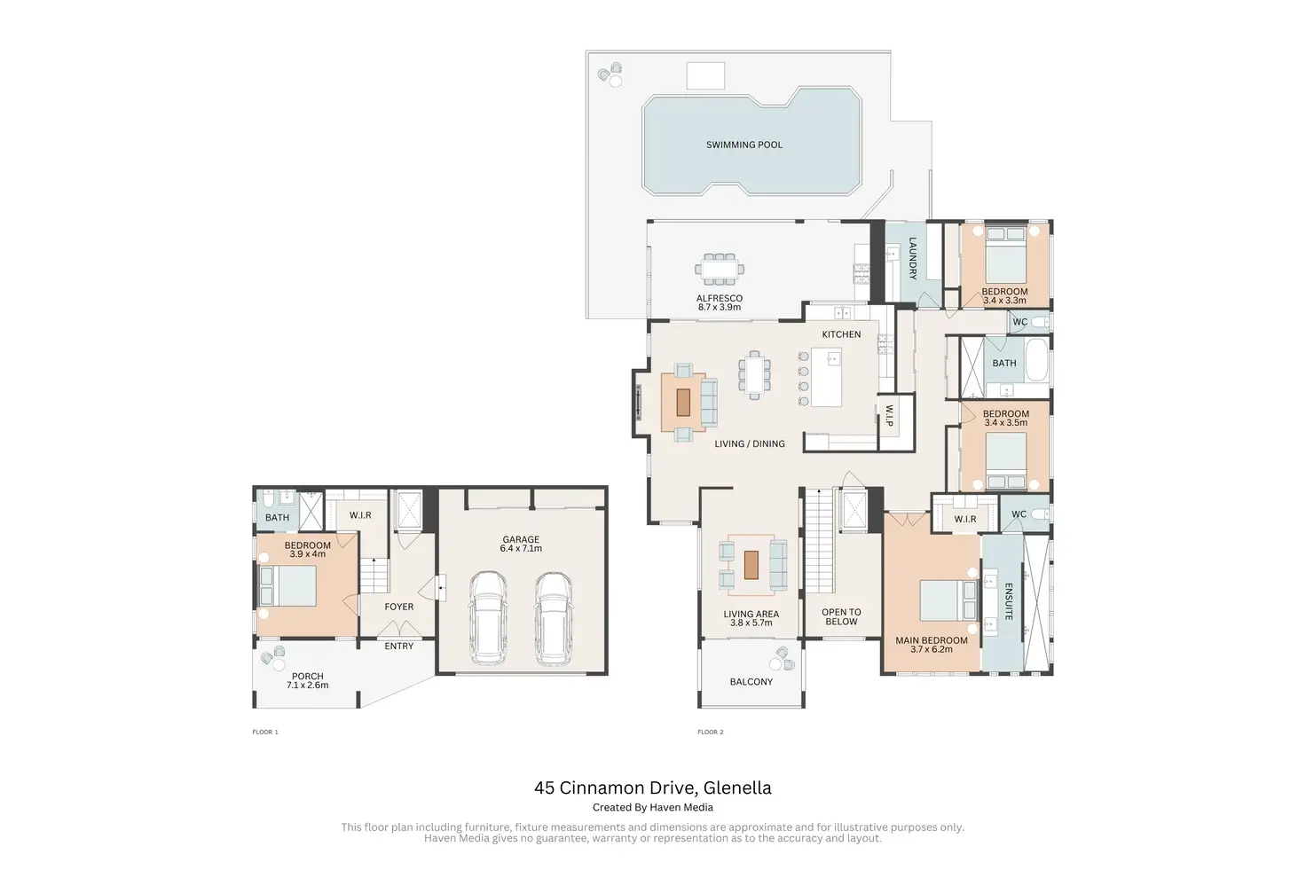 The over-king sized master suite rivals a luxury hotel, with double door access, walk-in robe, wheelchair friendly toilet and the most amazing ensuite with floor to ceiling tiles, full length walk-through double shower and double vanity with feature lighting. The remaining 2 bedrooms on this level are generously sized and share the family bathroom with deep bath, shower and conveniently separate toilet. Spacious laundry with ample storage in addition to dual linen cupboards in the hallway. All wet areas include stone benchtops and quality accessories.