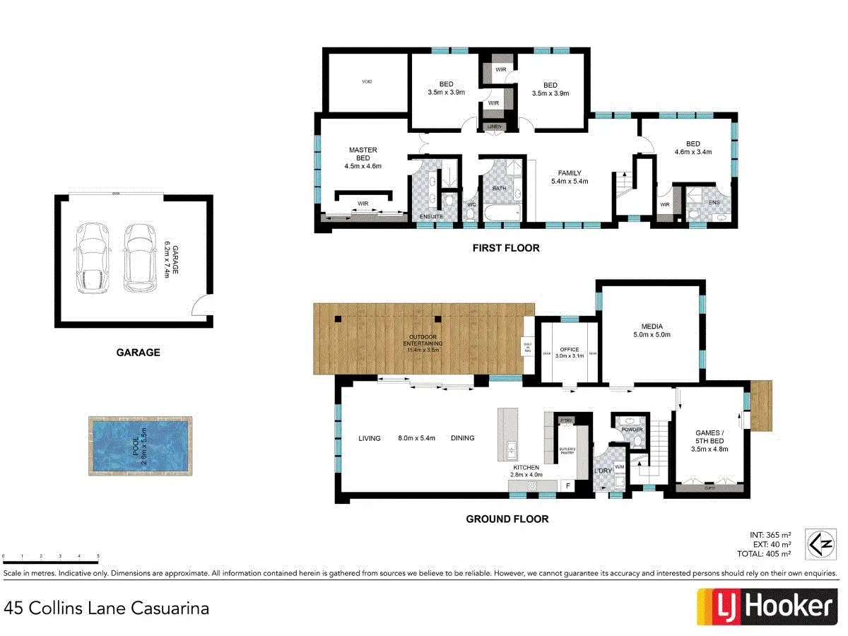 The lower level incorporates a double sided study with 4 work stations, home cinema and games room or 5th bedroom, with built-ins and access to the back courtyard. A separate powder room services this level.