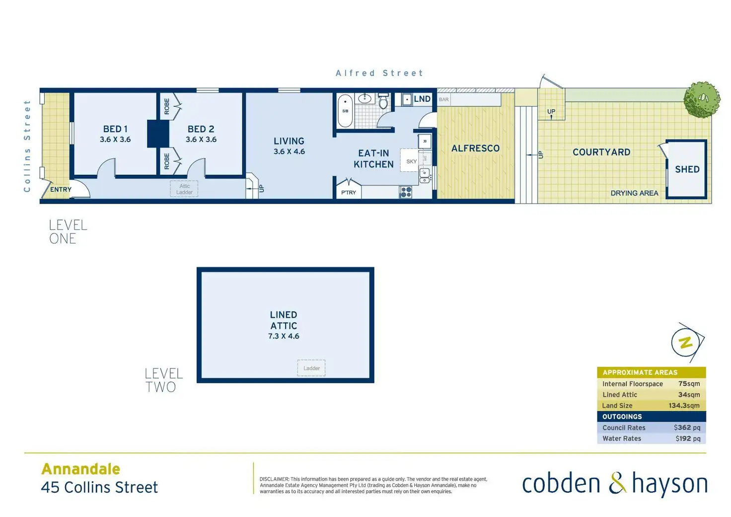 2 Bed • 1 Bath • 0 Car • 134m²