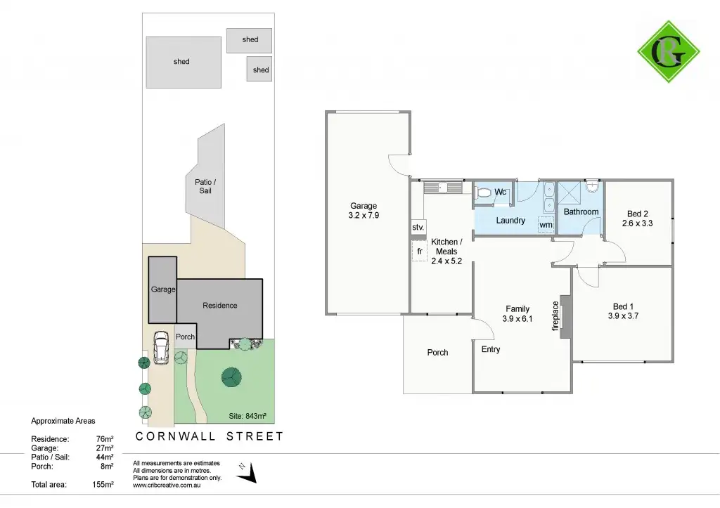 2 Bed • 1 Bath • 4 Car • 842m²