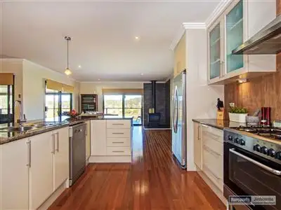 Property condition: Excellent Property Type: House House style: Contemporary Garaging / carparking: Double lock-up Construction: Cladding Joinery: Aluminium Roof: Iron Walls / Interior: Gyprock Flooring: Timber Kitchen: Designer Living area: Open plan, Separate living Main bedroom: King Bedroom 2: Double and Built-in / wardrobe Bedroom 3: Double and Built-in / wardrobe Bedroom 4: Double and Built-in / wardrobe Additional rooms: Family, Pool/billiard room, Media Main bathroom: Bath, Separate shower Laundry: Separate Views: Rural Outdoor living: Deck / patio Land contour: Flat Grounds: Backyard access, TidyLand details