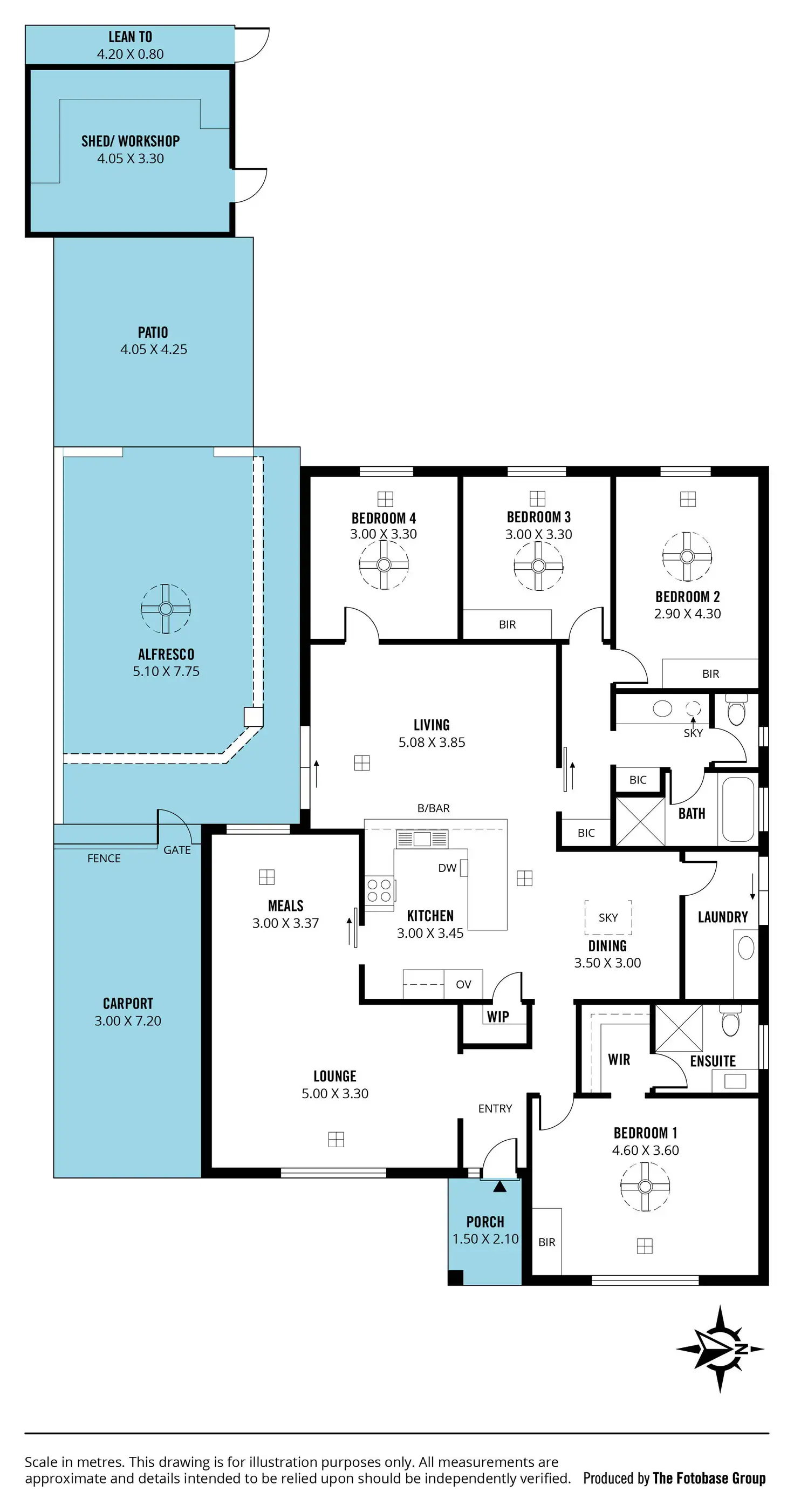 The master bedroom is a private sanctuary, complete with a built-in robe, a spacious walk-in robe, and a well-appointed ensuite. Bedrooms two and three are equally inviting, featuring built-in robes and ceiling fans, while bedroom four also includes a ceiling fan, making every room a comfortable retreat. The cleverly designed three-way main bathroom adds an extra layer of convenience, making busy mornings a breeze. A separate laundry with external access adds further practicality.