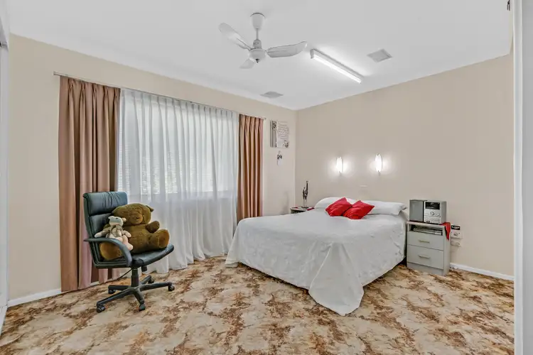 The spacious backyard has a powered shed, bore, trees, large vegetable garden, reticulated lawns and side access to park the boat or caravan with undercover parking for the extra vehicle.