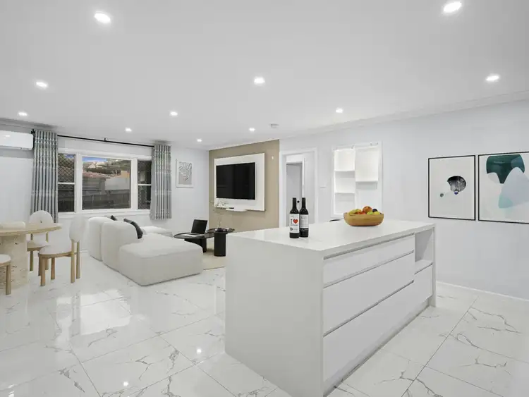 Inside, you'll be instantly impressed by the crisp colour palette, elegant tiling, and light-filled open-plan living zone. Whether you're entertaining or enjoying a quiet night in, the spacious lounge with feature wall and TV mount is ready to go. The home flows easily into the showstopping kitchen--boasting stone benchtops, a waterfall island, under-mount sink and streamlined cabinetry that brings a sleek, designer edge.