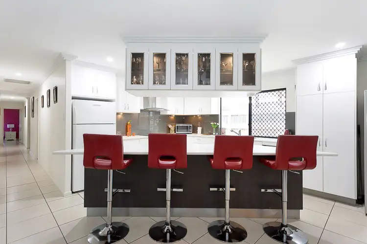 Modern kitchen is the hub of the home with large breakfast bar, heaps of cupboards space, pantry & modern appliances.