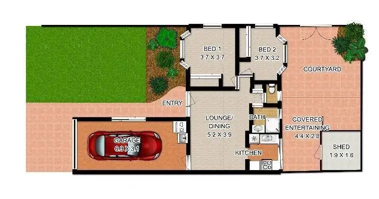 2 Bed • 1 Bath • 1 Car • 200m²