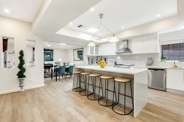 Renovated and fully repainted, the home's highlights include a caterer's kitchen where cool whites, coffered ceilings, a 900mm stainless oven, dishwasher, plumbed fridge and Caesarstone tops complete a custom design with a generous island for grazing.