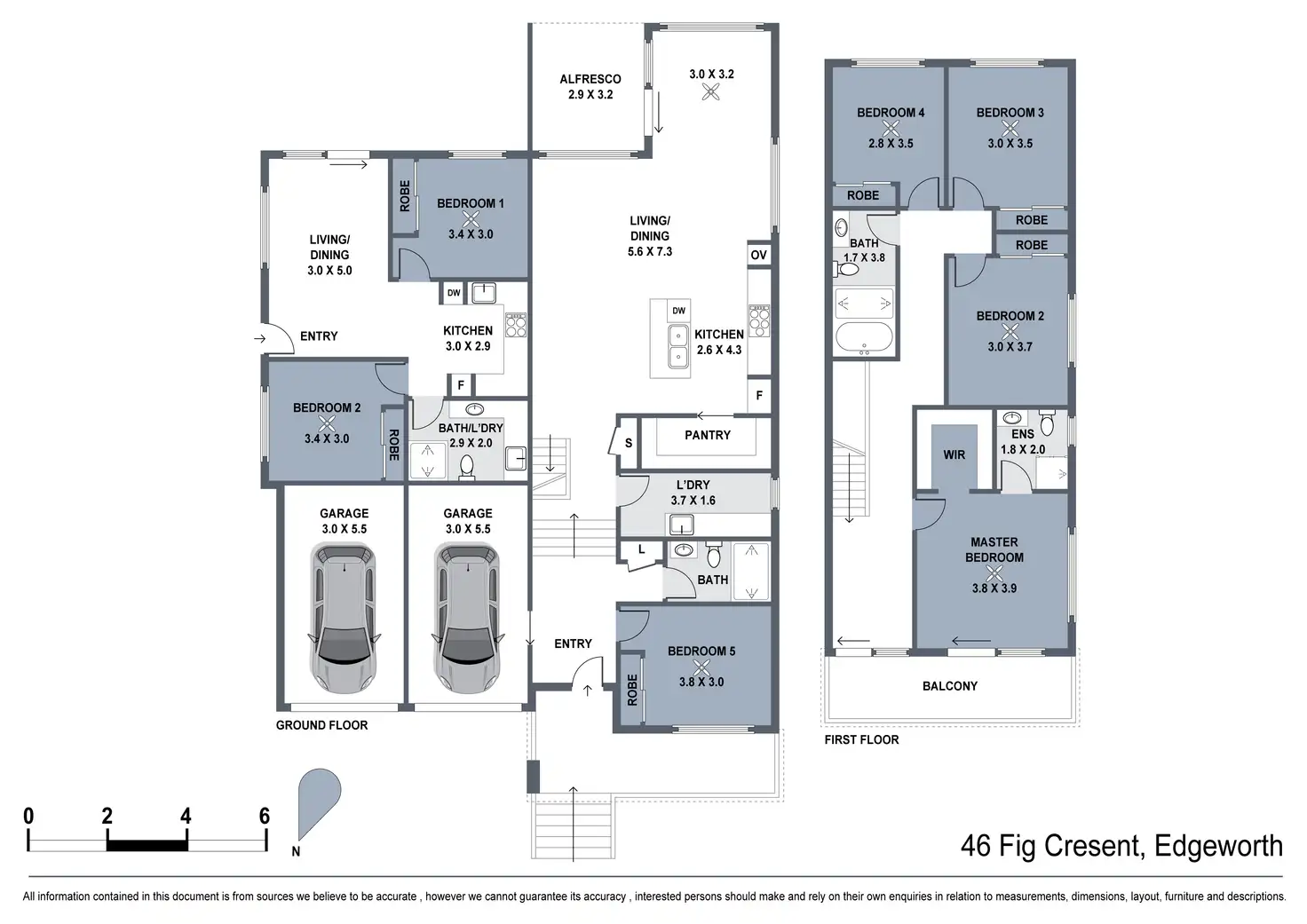 - Four top-floor bedrooms plus a fifth downstairs, all robed