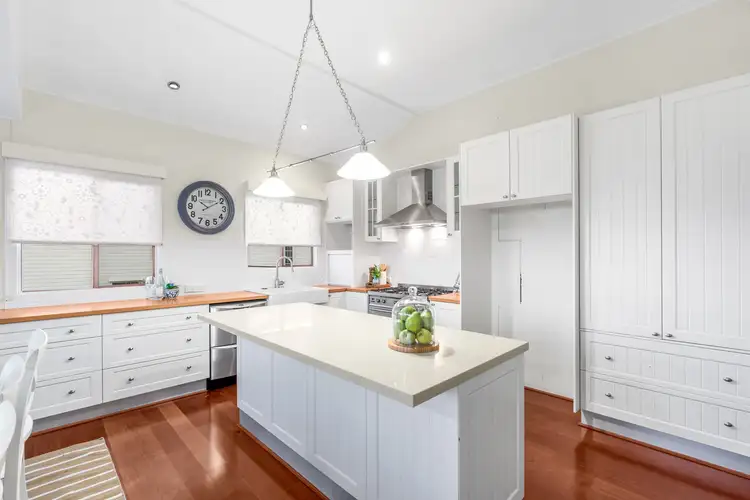 An abundance of traditional features complement every room of this home including high ceilings, VJ walls, picture rails, detailed wall panelling, pendant lighting and timber floorboards. The upper level features panoramic views of Moreton Bay and surrounding landscape from the stunning farmhouse inspired kitchen with combined dining area and rear deck. A beautiful living room, enhanced in character by a bay window and original fireplace, sunroom, three bedrooms and family bathroom complete this floor.