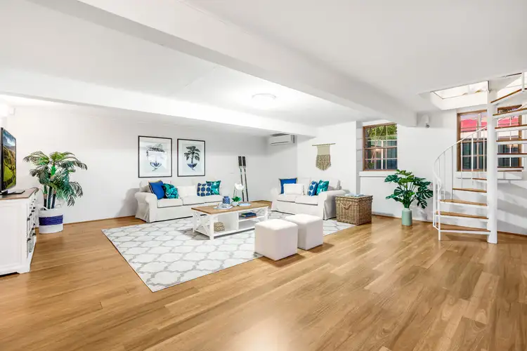The lower level has private external access from the garden and can also be accessed from the internal spiral staircase. This level contains a spacious living room with dual sliding doors out to the garden and covered patio with an additional guest accommodation/multi purpose room, full bathroom and laundry.