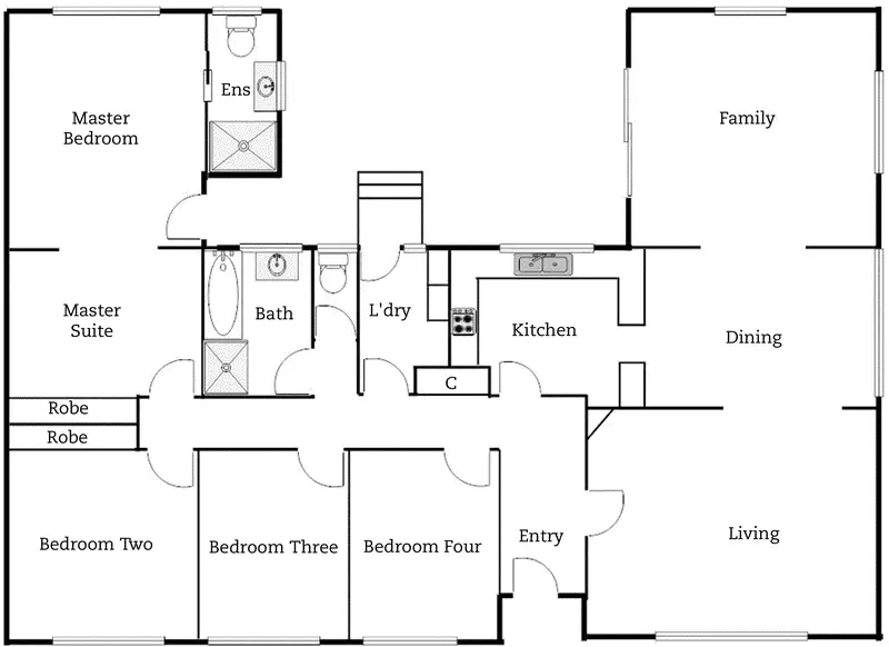 The master bedroom suite is enormous and includes built-in wardrobe and ensuite and also has access to the back garden. There are three additional bedrooms, one with built-in wardrobe, main bathroom, separate laundry and toilet.