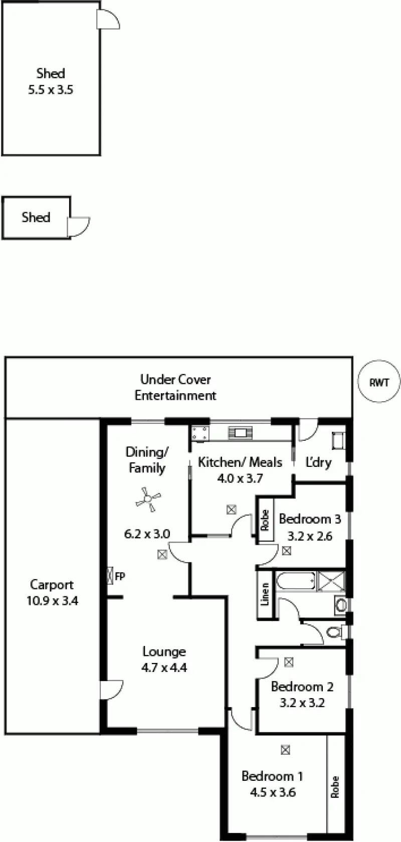 3 Bed • 1 Bath • 2 Car • 746m²