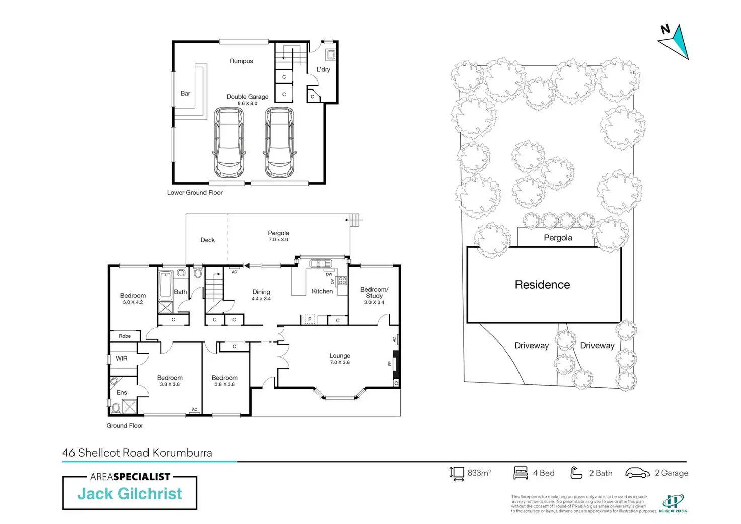 4 Bed • 2 Bath • 2 Car • 834m²