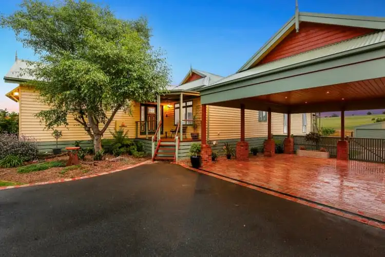 Emanating timeless elegance, the generous living areas offer period features plus the charming crackle of a wood fire courtesy of the Coonara beautifully integrated into a rustic feature brick wall. A combination of the classic colour scheme, high ceilings, distant views to paddocks plus connectivity to the alfresco area with outdoor kitchen, strengthen the room's appeal.