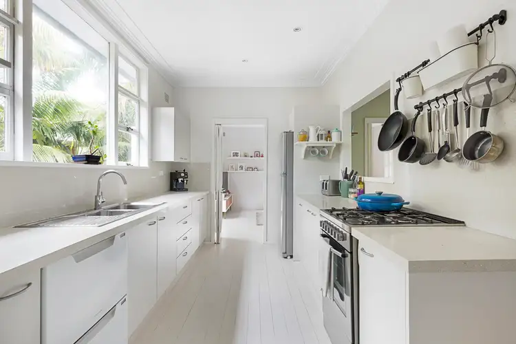 • The living and dining area is a bright, elegant area that is brightened by painted floorboards, and features a ceiling fan, feature leadlight doors, decorative cornicing, and an easy-flow layout that connects with the verandah.