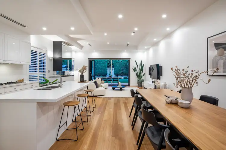 Open plan living comes alive to the rear under dimmable LED downlights and coffered ceilings. You'll love the 2Pac cabinetry and island bar, the huge pantry, and a gas cooktop, double wall oven and brand new fully integrated Bosch dishwasher, offering plenty of storage and counter space for everyday and every celebration.