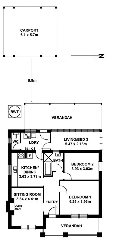 3 Bed • 1 Bath • 2 Car • 464m²