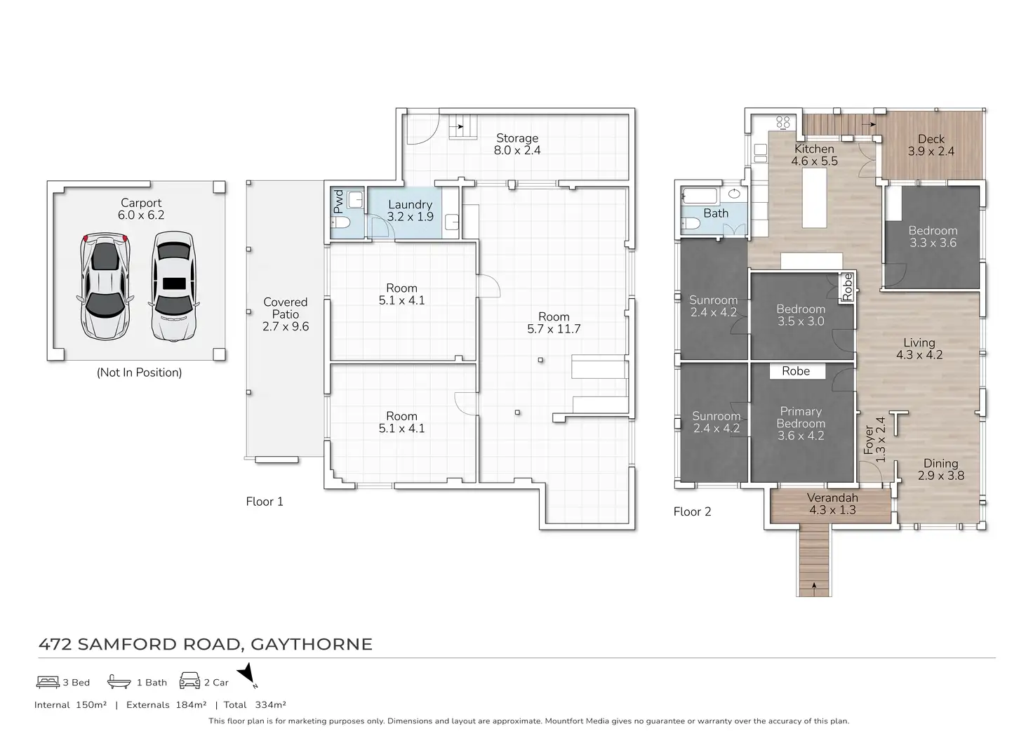 3 Bed • 1 Bath • 2 Car • 810m²