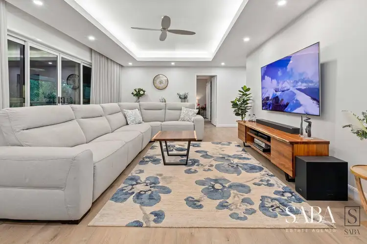 Offering the fifth bedroom with a separate bathroom & separate laundry with plenty of storage. The rear of the home features a large, combined family room, dining area with a functional kitchen with lots of cupboard & storage space. This flows seamlessly to the outdoor areas & the spa pool, set in a fully fenced rear yard with manicured gardens and privacy.