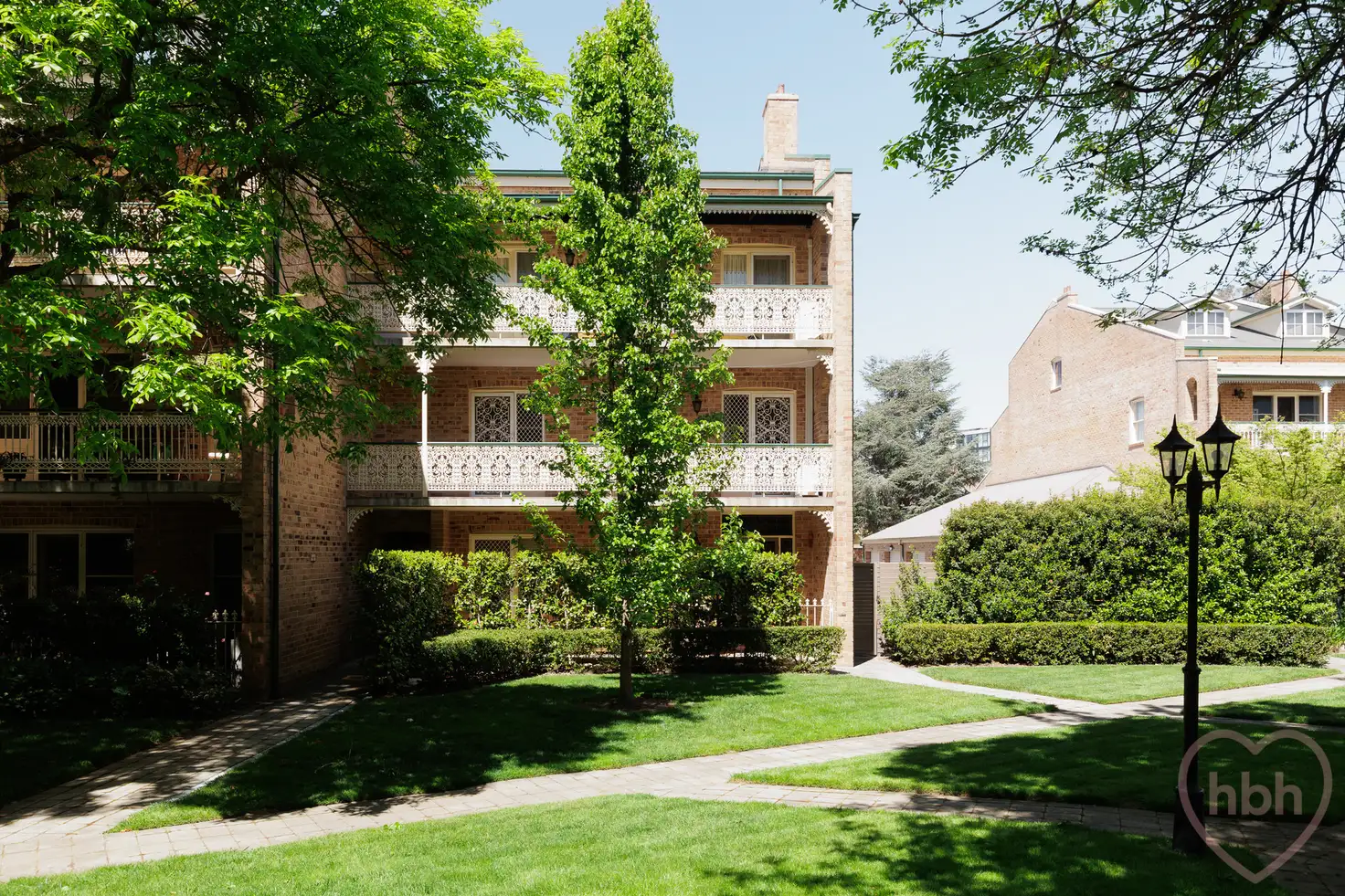 Established trees, decorative lampposts dot lush lawns…the shared gardens both intimate and welcoming. Think time to self, nature bathing or gathering with family and friends for a drink or two before heading out into the city, by day or night.