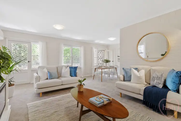 Leadlight glass glows green and red in the sunlight and new carpet adorns the stairwell. No. 48 is housed on the second floor and opens to balconies at each end. Internal brick walls have been painted whisper white and new carpeting stretches warm underfoot. The ceilings are high and the proportions generous. The brand new kitchen, laundry and bathrooms introduce a luxe contemporary flair, enhancing the overall feeling of effortlessness.